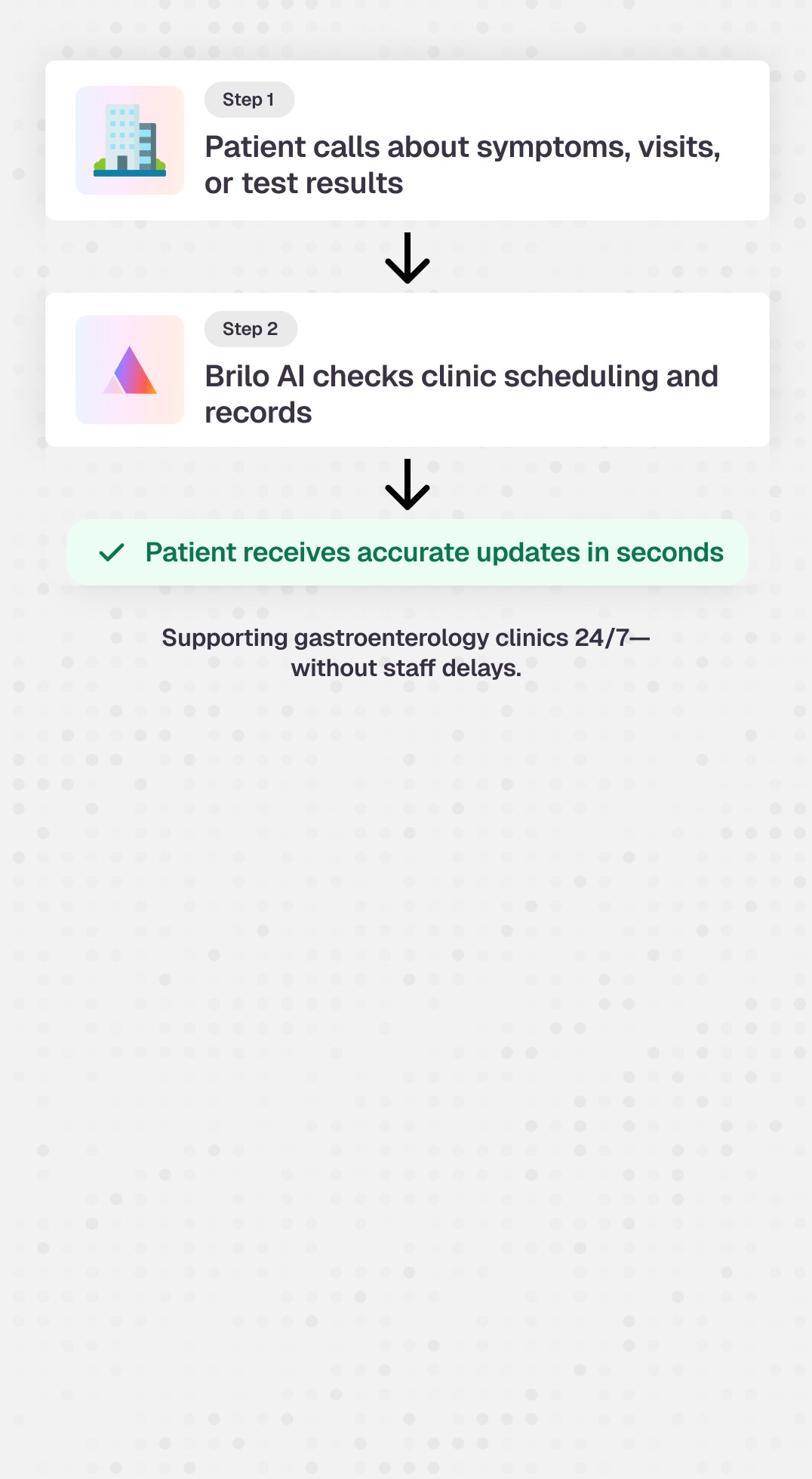 Explore how Brilo AI helps GI clinics manage procedure scheduling, referral intake, patient preparation communication, and follow-up coordination efficiently.