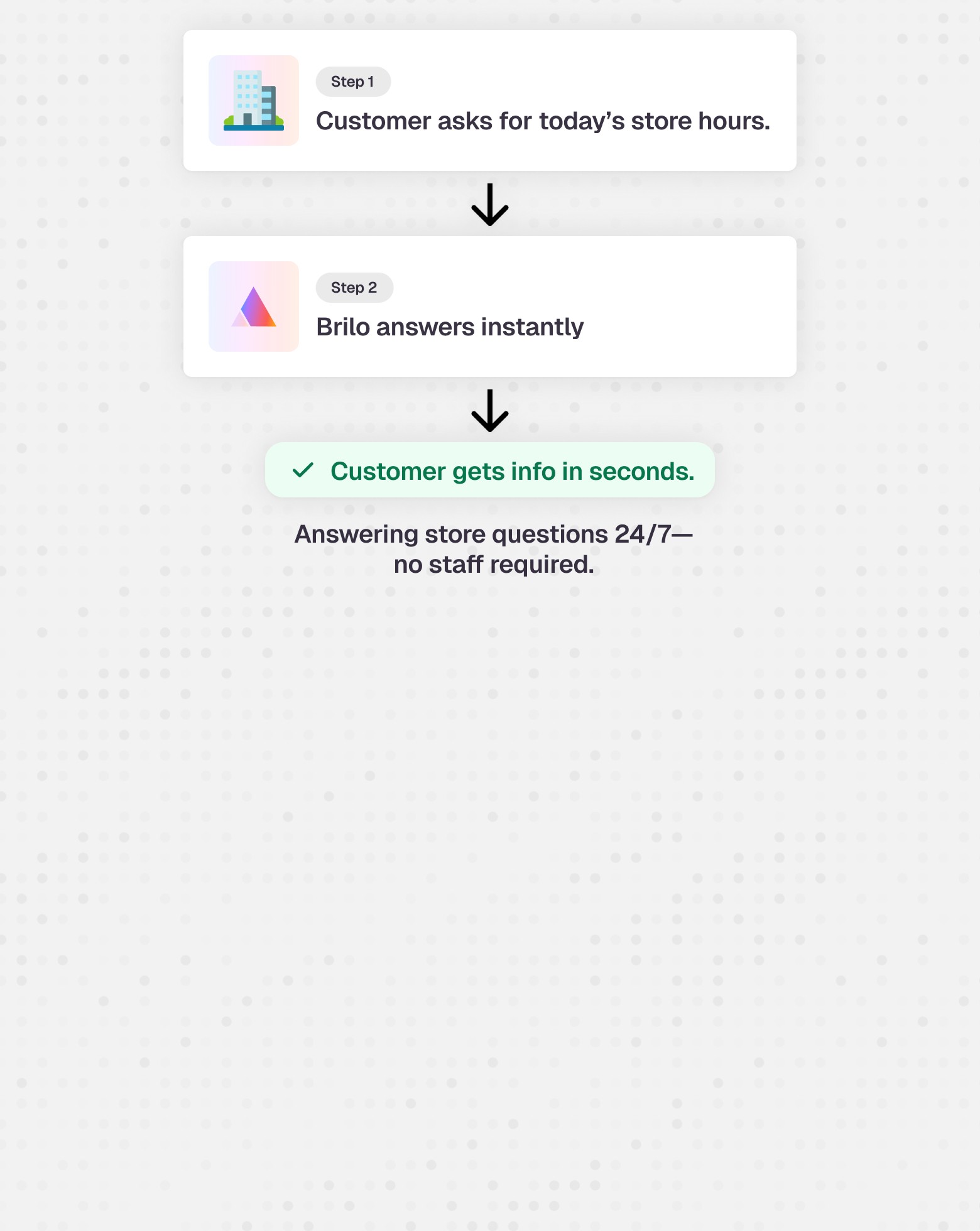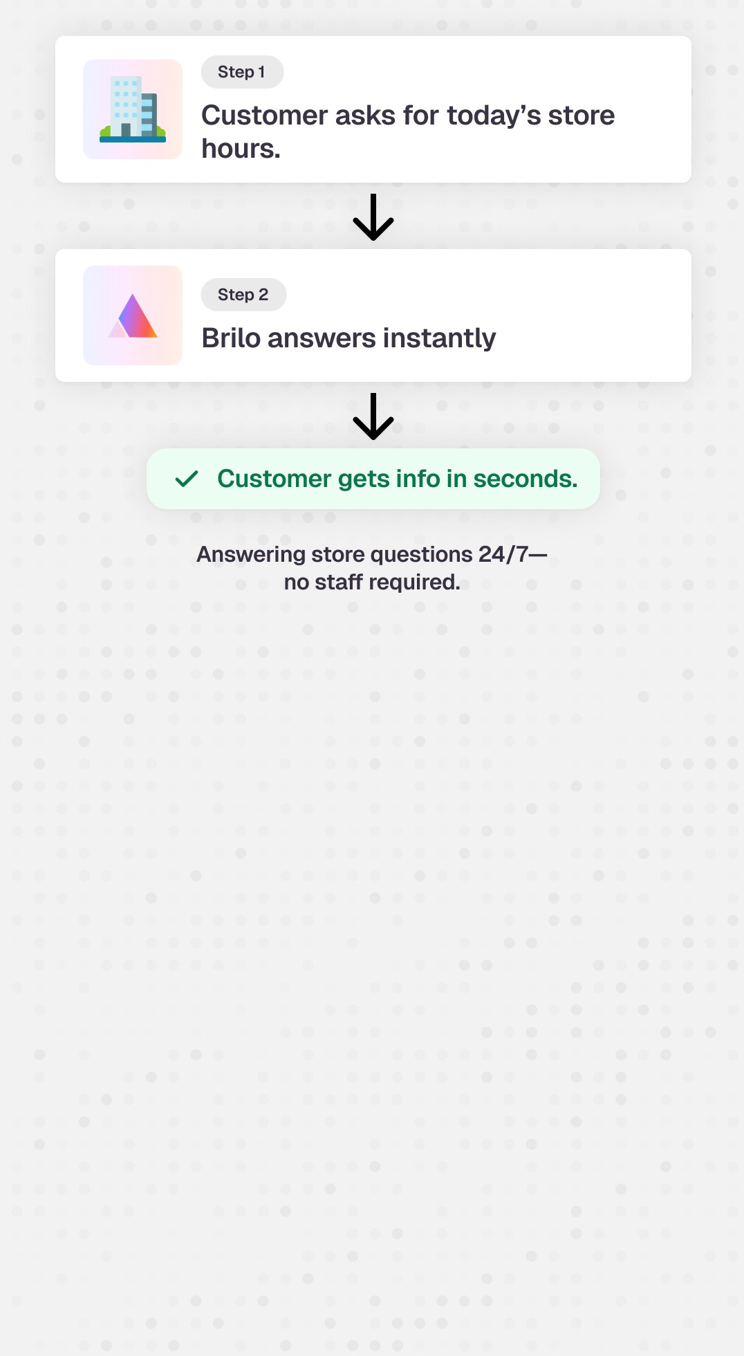 Never miss a call during lunch rush or peak holiday hours. Brilo’s conversational AI for retail keeps your phone lines open—even when your stores are closed.
