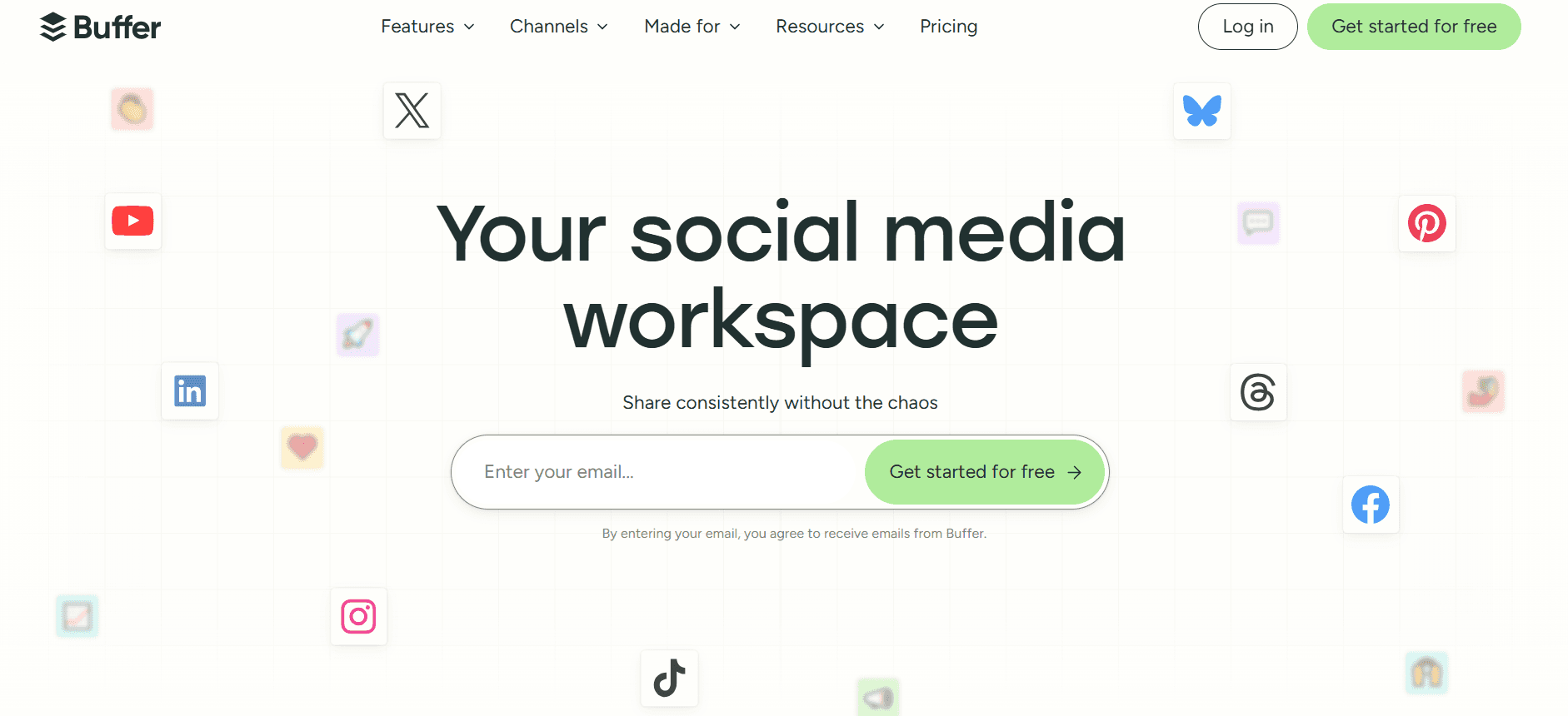 Buffer is the starkest contrast to Sprinklr on this list. It's focused, simple, and priced for real budgets. Scheduling across Instagram, Facebook, LinkedIn, X, TikTok, Pinterest, and Mastodon works reliably. Analytics are basic but accurate. The free plan covers 3 channels with 10 scheduled posts each — genuinely functional for small teams.